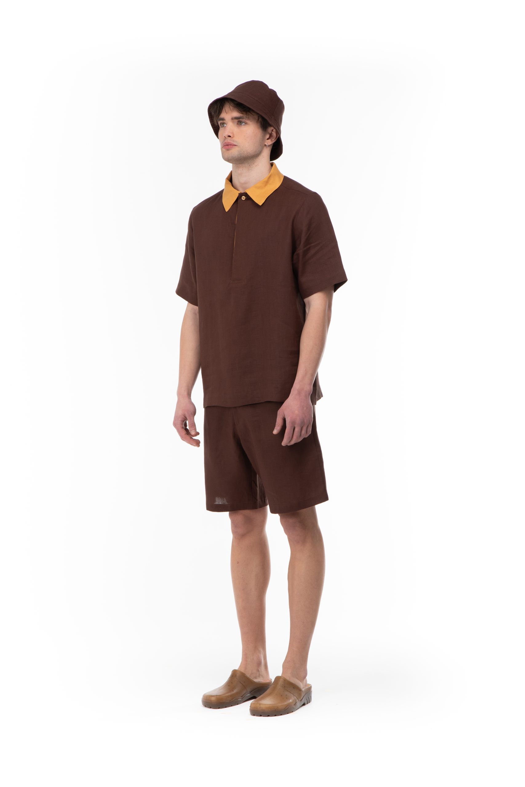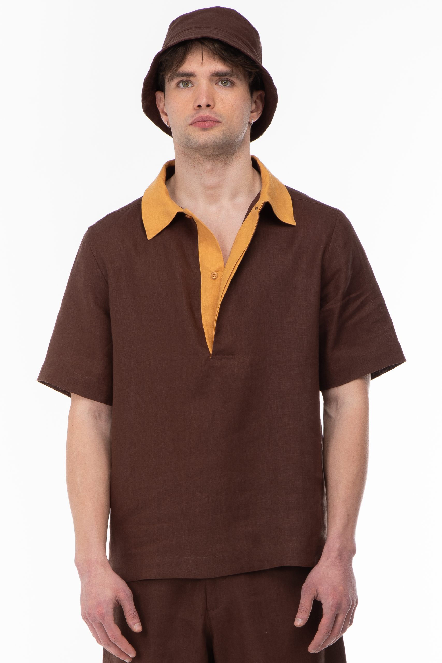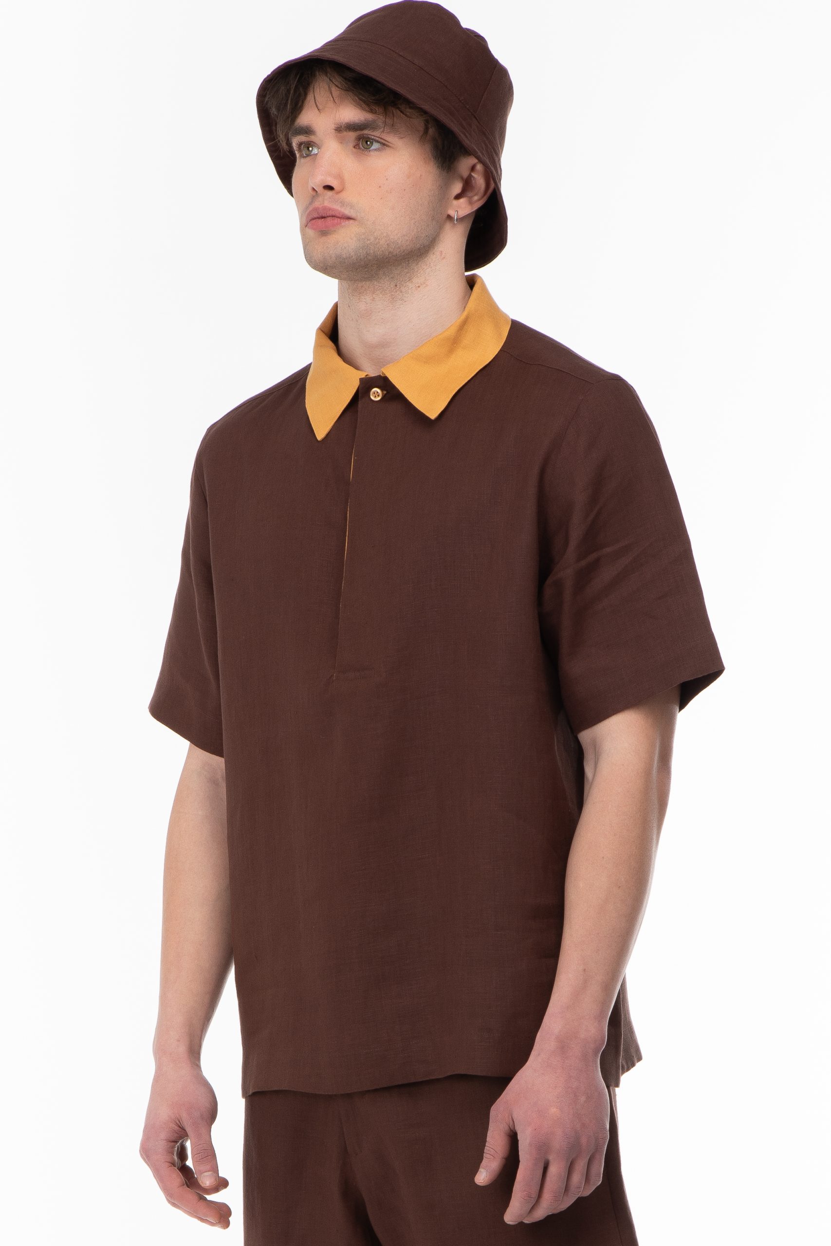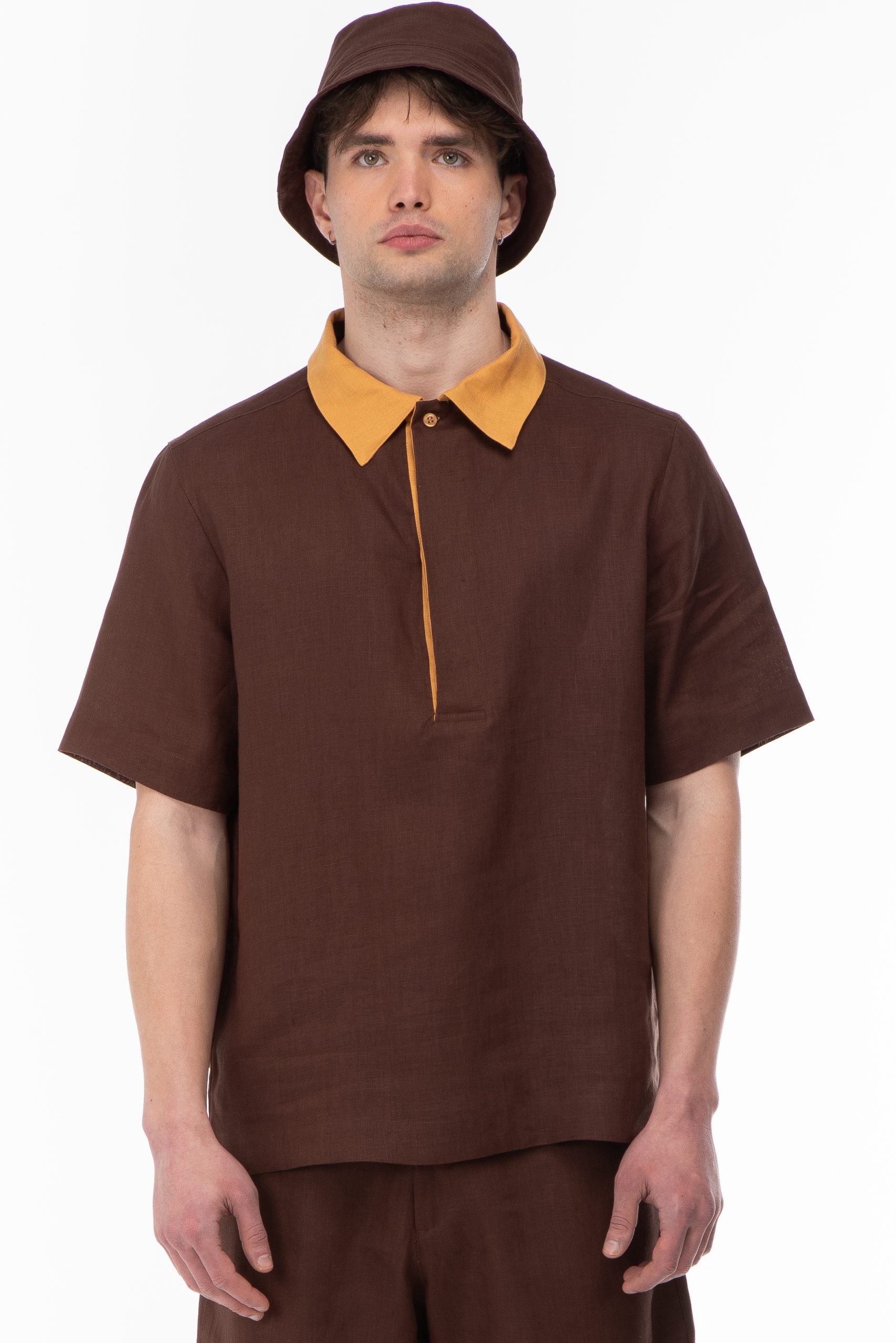 FABRIC : Linen100% COLOR : Brown / Mustard