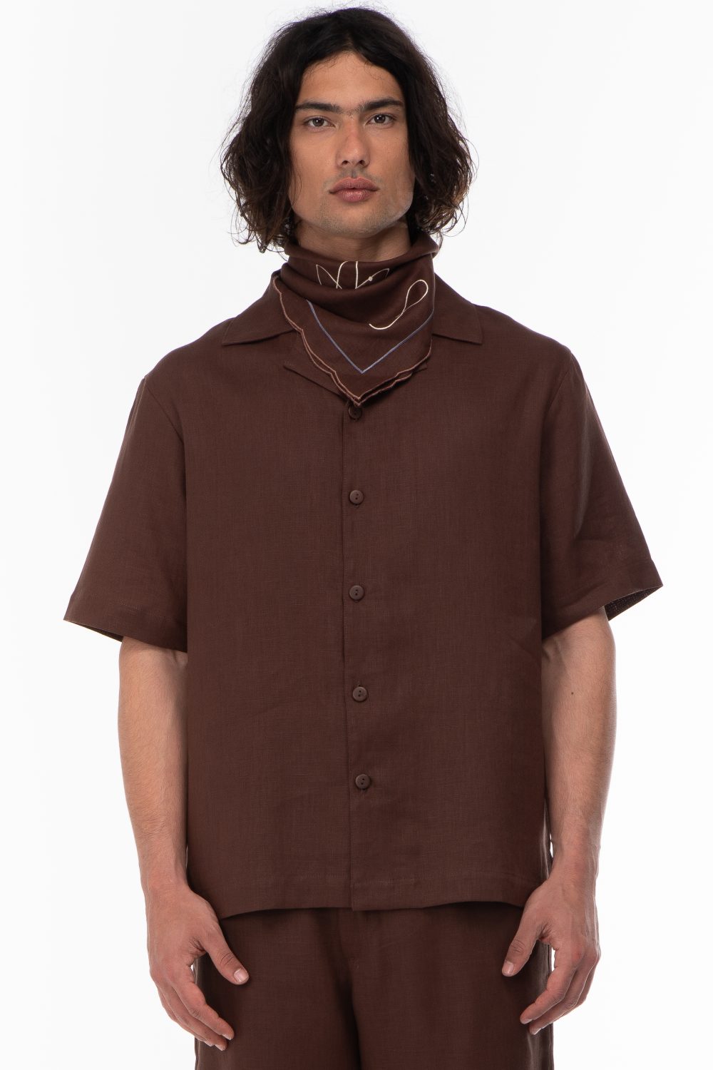 LINEN BLEND SHIRT WITH EMBROIDERY