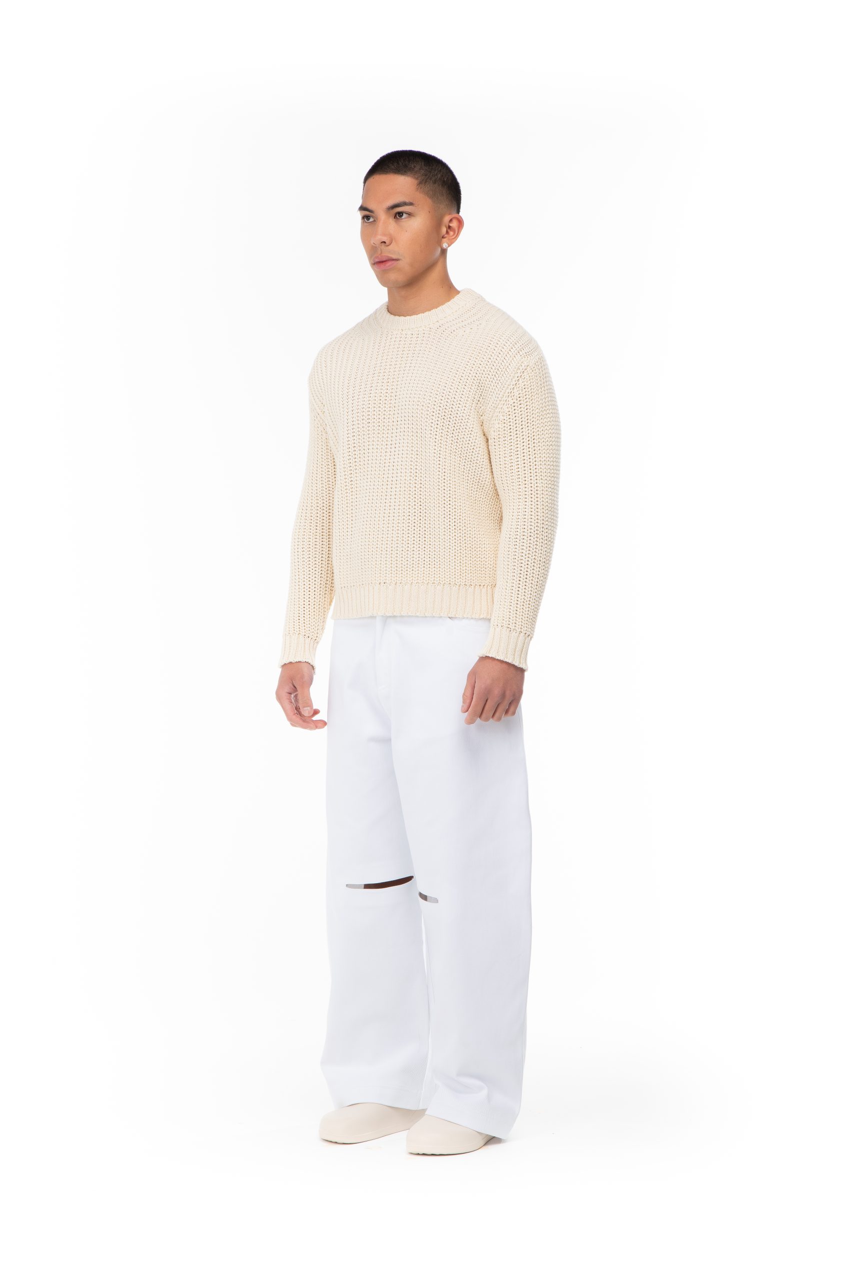 OVERSIZED OFF WHITE KNITT SWEATSHIRT IN WOOL AND COTTON