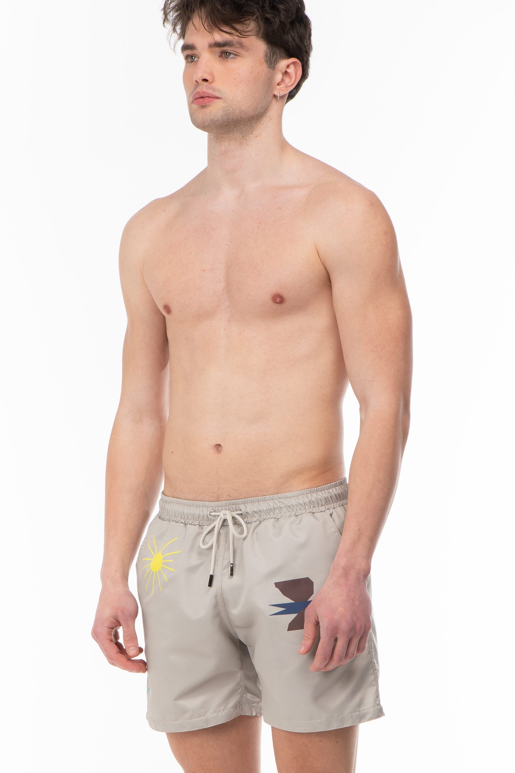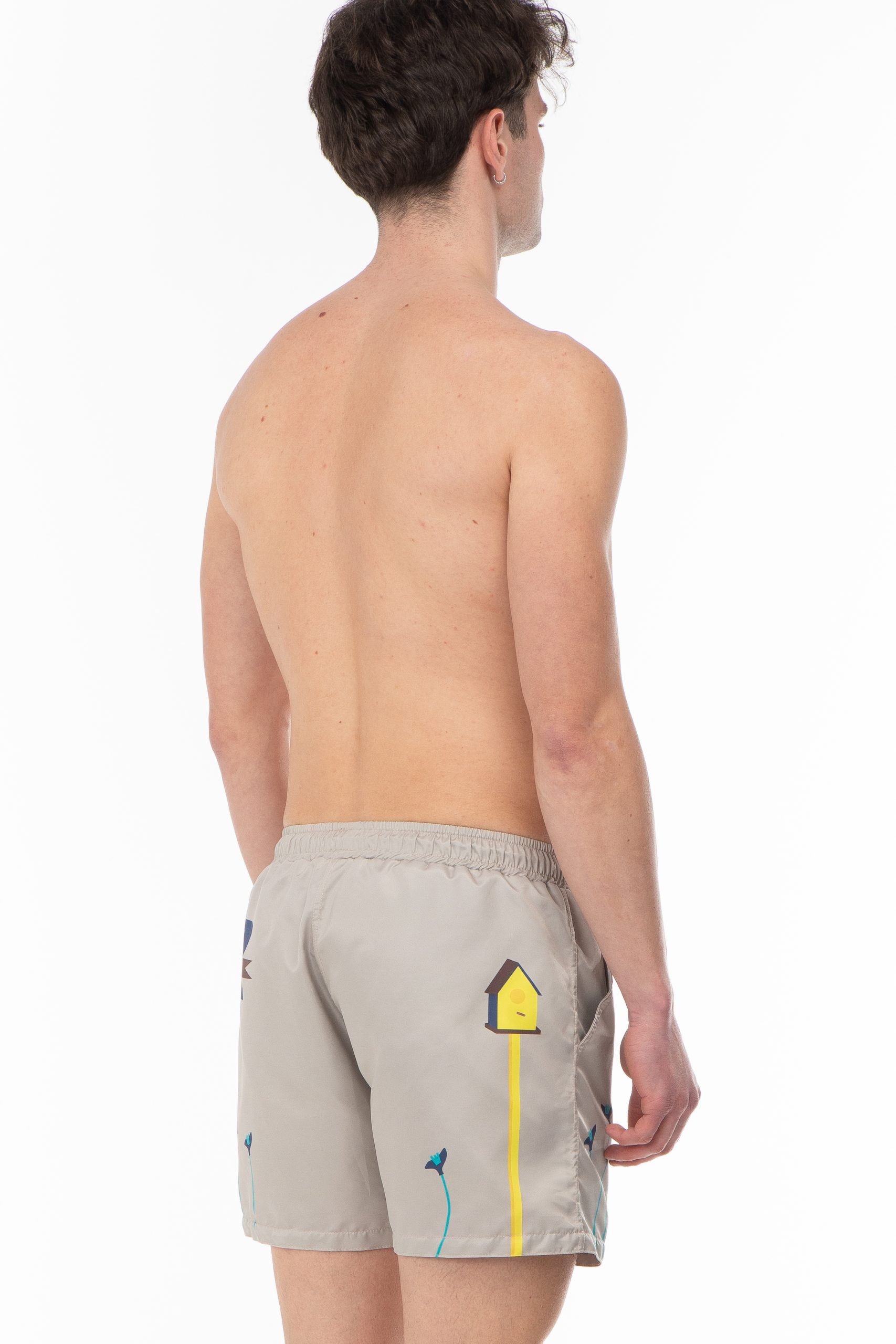 SPRING DATE : SWIM SHORTS WITH SWALLOWS IN DARK BEIGE